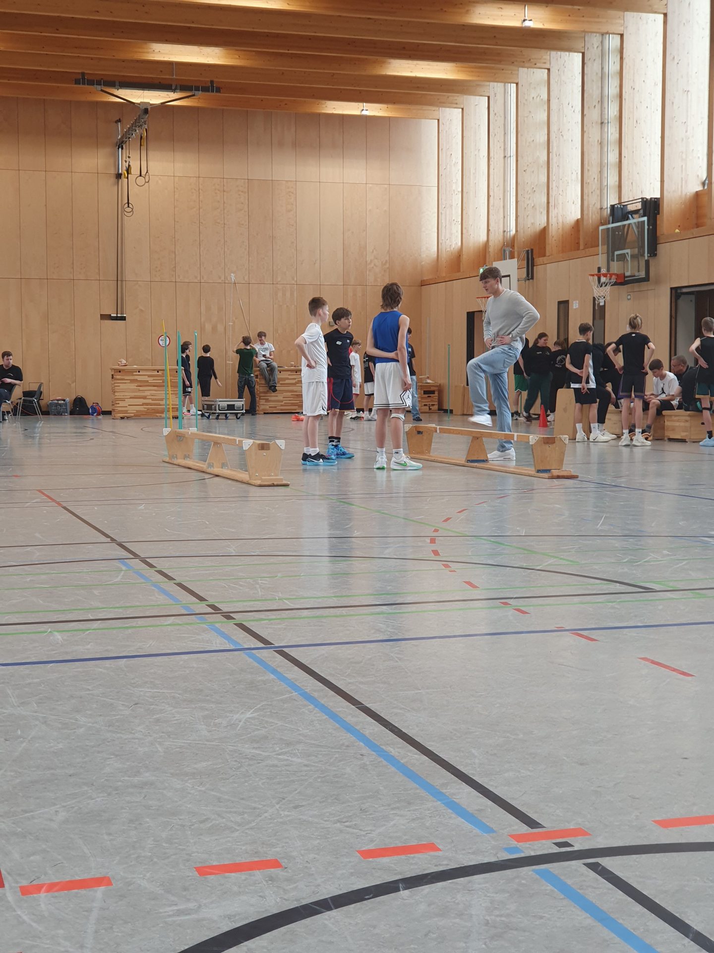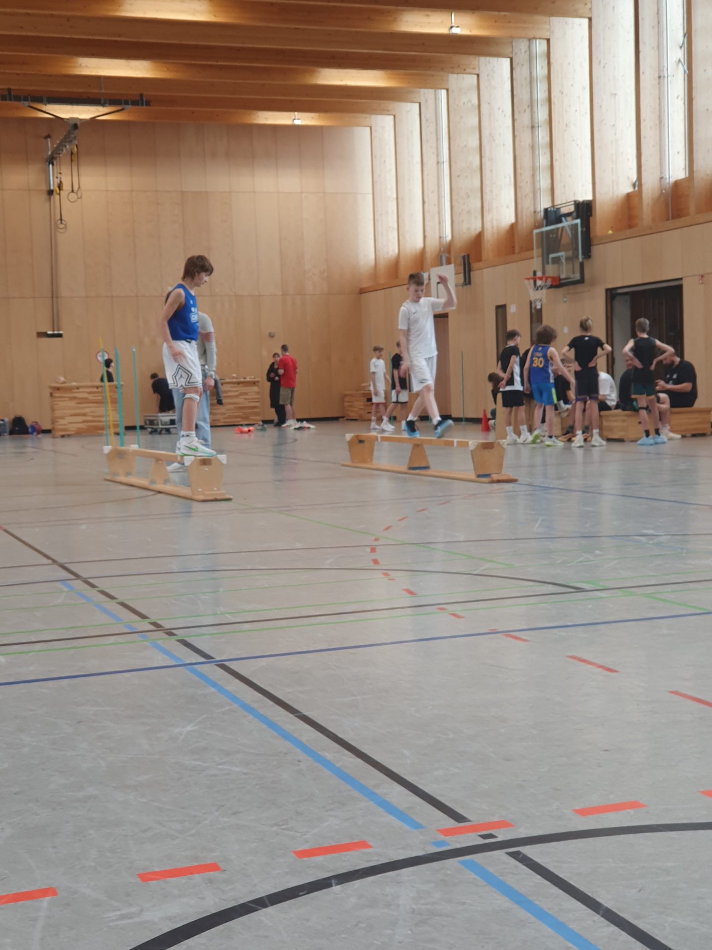Zunächst fand in Kooperation mit den Gladiators Trier die Vermessung der Spieler*innen sowie verschiedene Koordinations- und Sprinttests statt.